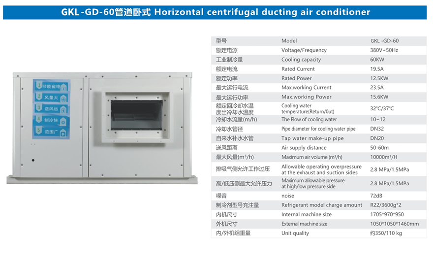 GKL-GD-60管道卧式蒸发冷高效空调机组
